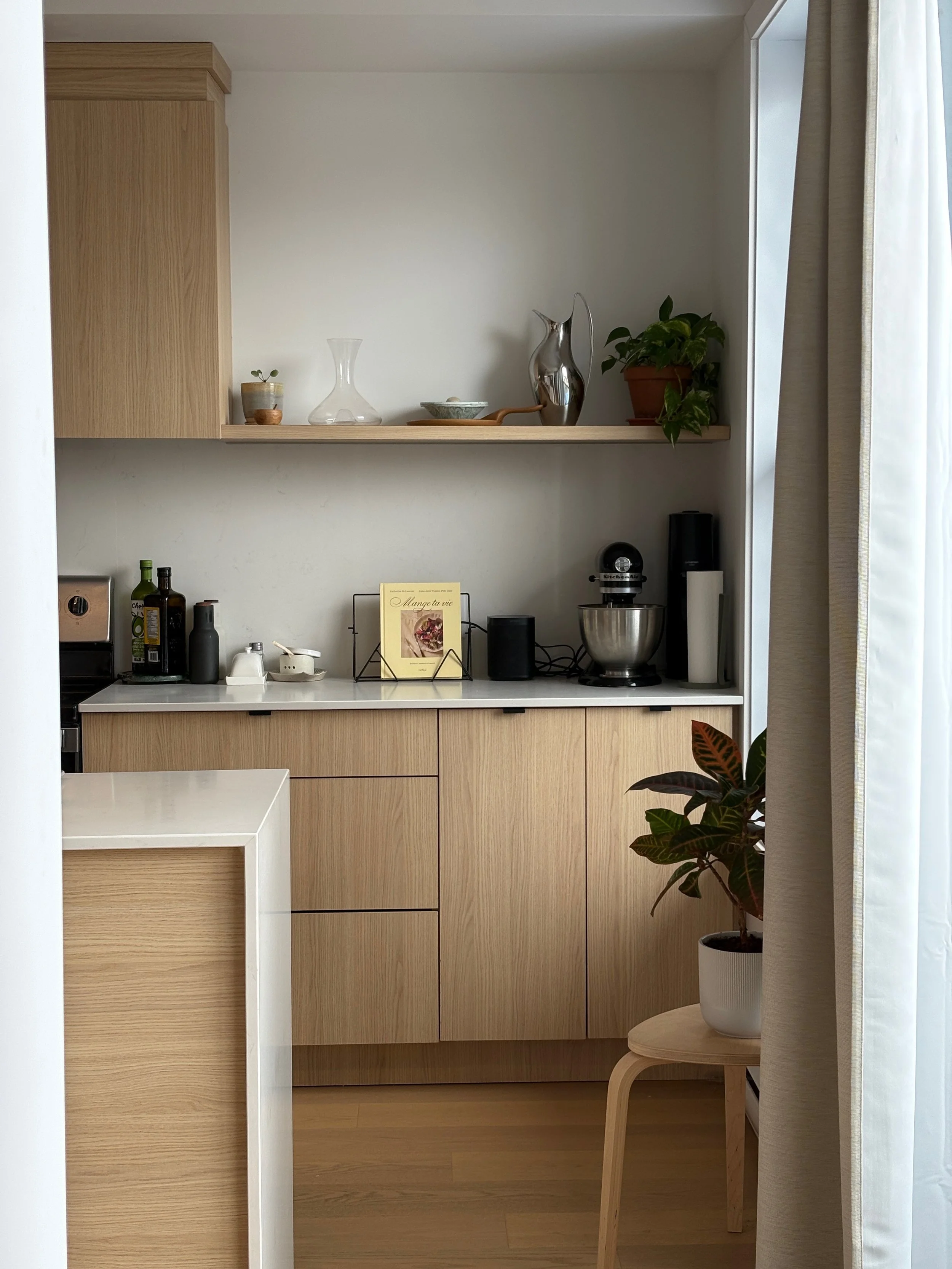 April is slipping by so quickly, and I’ve been trying to slow down enough to really enjoy my apartment before I move in two months. The kitchen, especially, feels like my little sanctuary. It’s where I spend hours every week cooking and listening to podcasts, but it also captures my aesthetic perfectly. If I ever had to design one from scratch, I’d probably choose the exact same palette and details: light wood, open shelving, and just enough space for decorative objects. It has that calm, slightly Scandi-inspired feel that instantly makes me feel at home.
