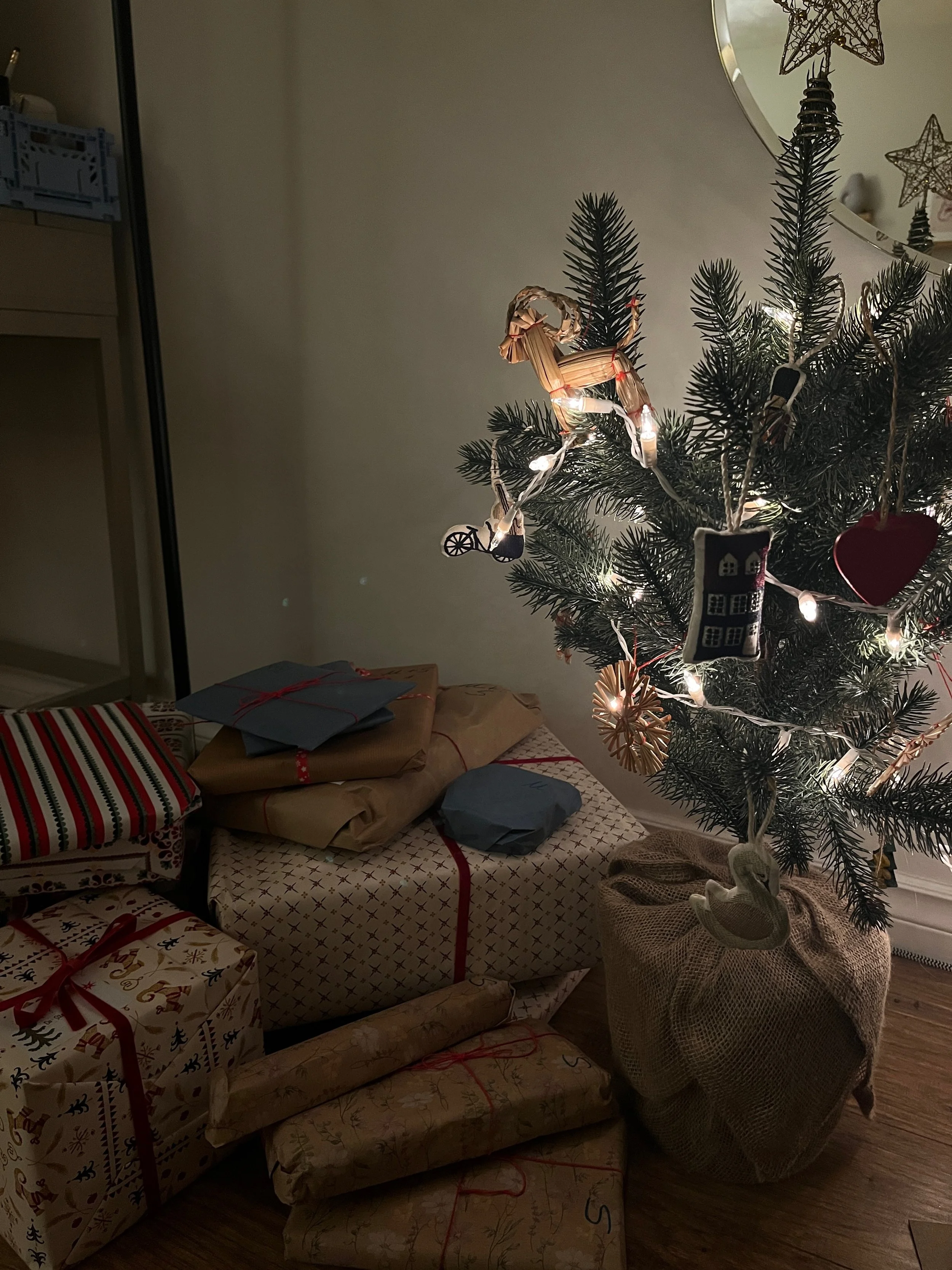 Similar to gifts, I love ornaments that tell a story about the people who live in a home. Some of the ones I treasure most are Copenhagen-inspired pieces from Ferm Living, which add a touch of Scandinavian elegance to my tree, and a set of delicate straw ornaments (traditional German decorations) that my boyfriend’s mom sent from Munich.