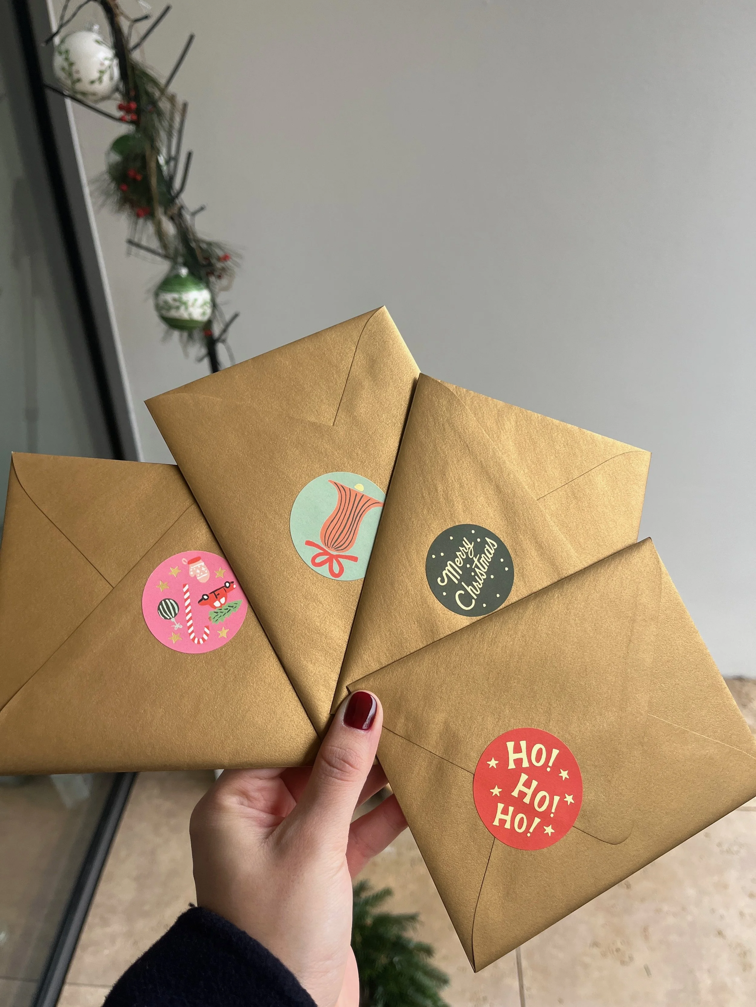 And finally, I love the ritual of sending holiday cards to friends and family. Choosing the right cards, writing thoughtful messages, and selecting festive stamps all feel special, especially since many of my friends are long-distance. This year, I’ve picked up pink and red cards from By Hollie Startup, a UK-based illustrator.