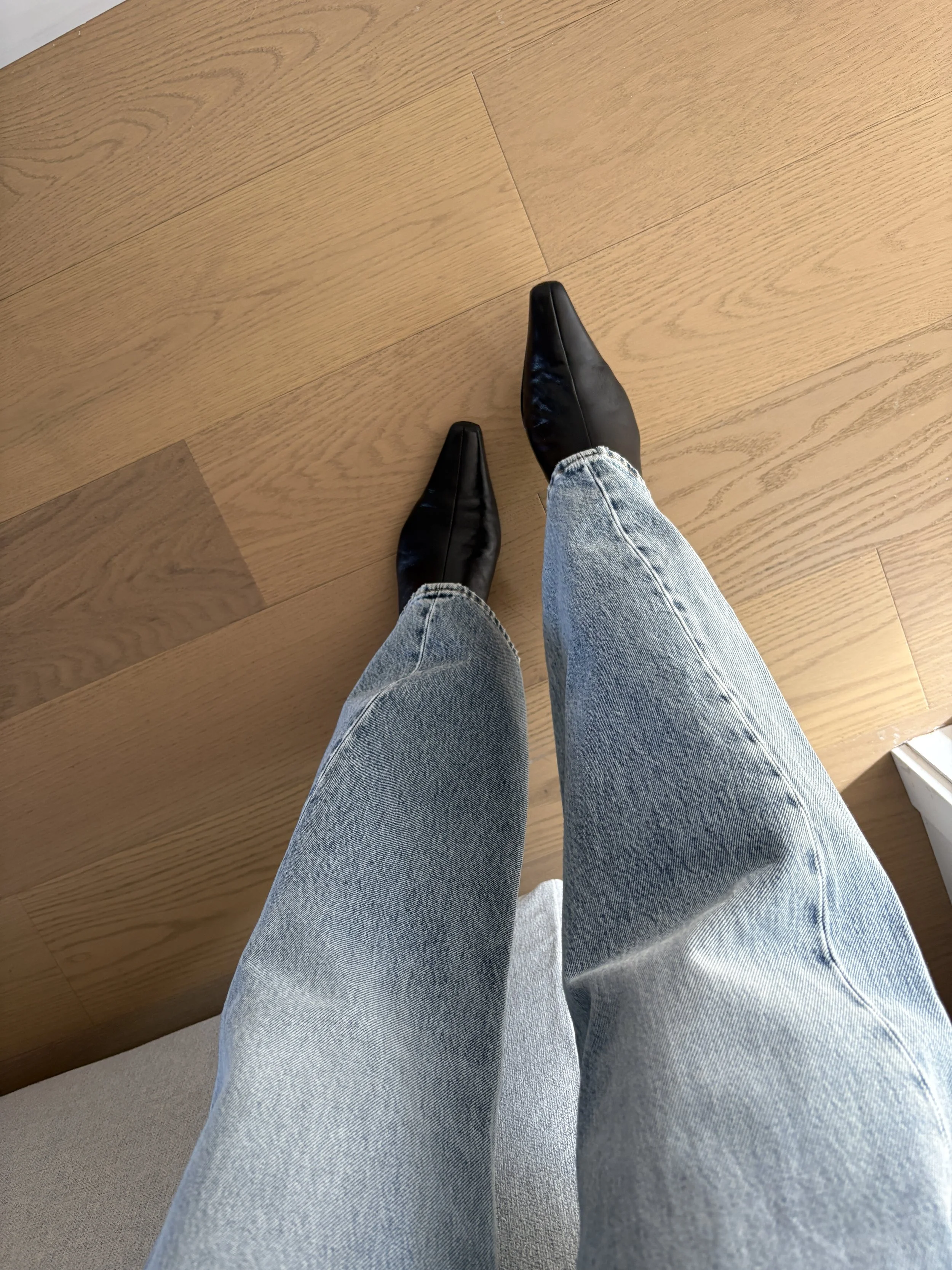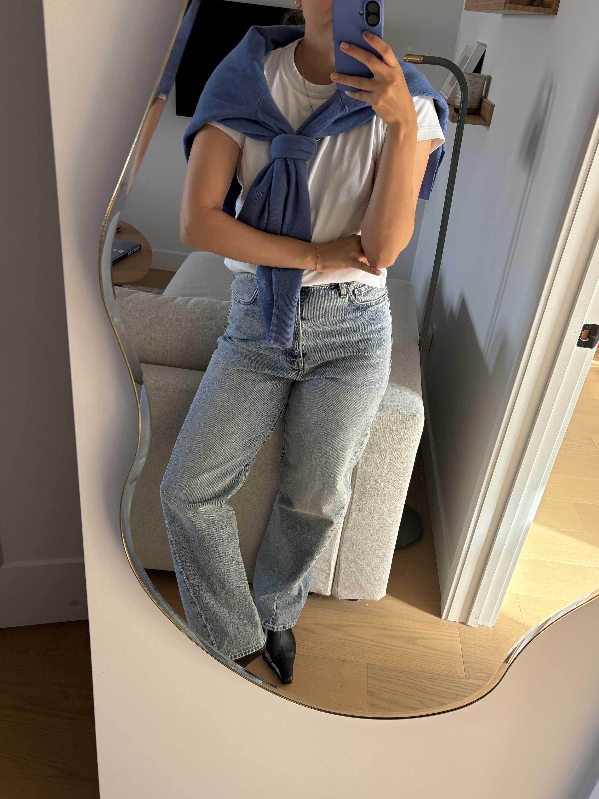 I work from home, so I don’t always dress up, but I wore this outfit on a day of meetings in town, layered with a trench coat. A simple white T-shirt, the twisted-seam jeans from Totême, and some heeled boots. I finished the outfit with a cashmere jumper tied around my neck for a little pop of colour. Comfortable, stylish, and a reminder that sometimes, the best outfits are the ones you don’t overthink.
