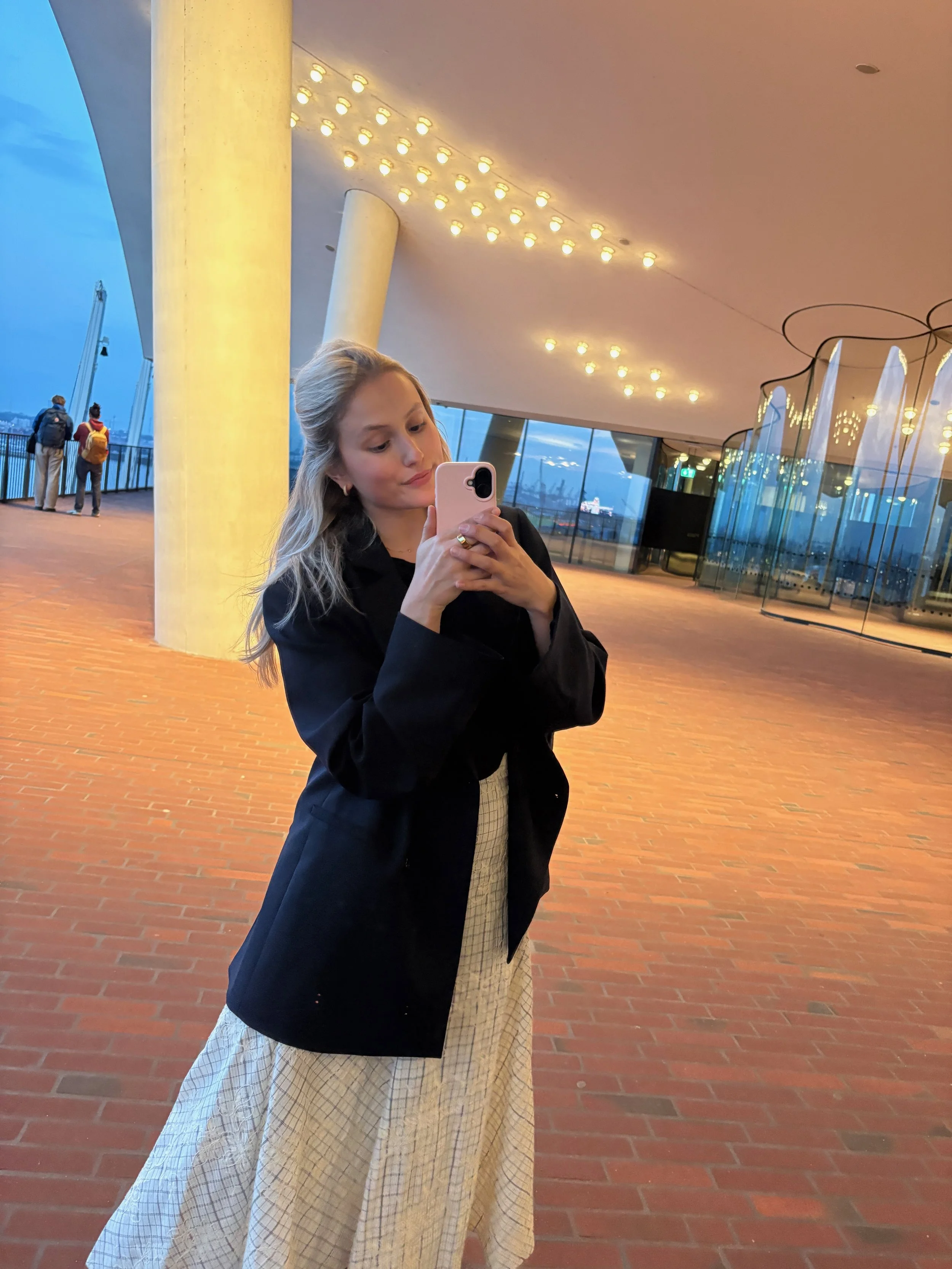 The second outfit is what I wore to a classical concert at the Elbphilharmonie. I’ve always loved the look of a blazer layered over a long dress or skirt, and here it felt like the perfect balance of elegant enough for the occasion, but still comfortable. I’d even say it had a slightly artsy feel, perfect for a concert!