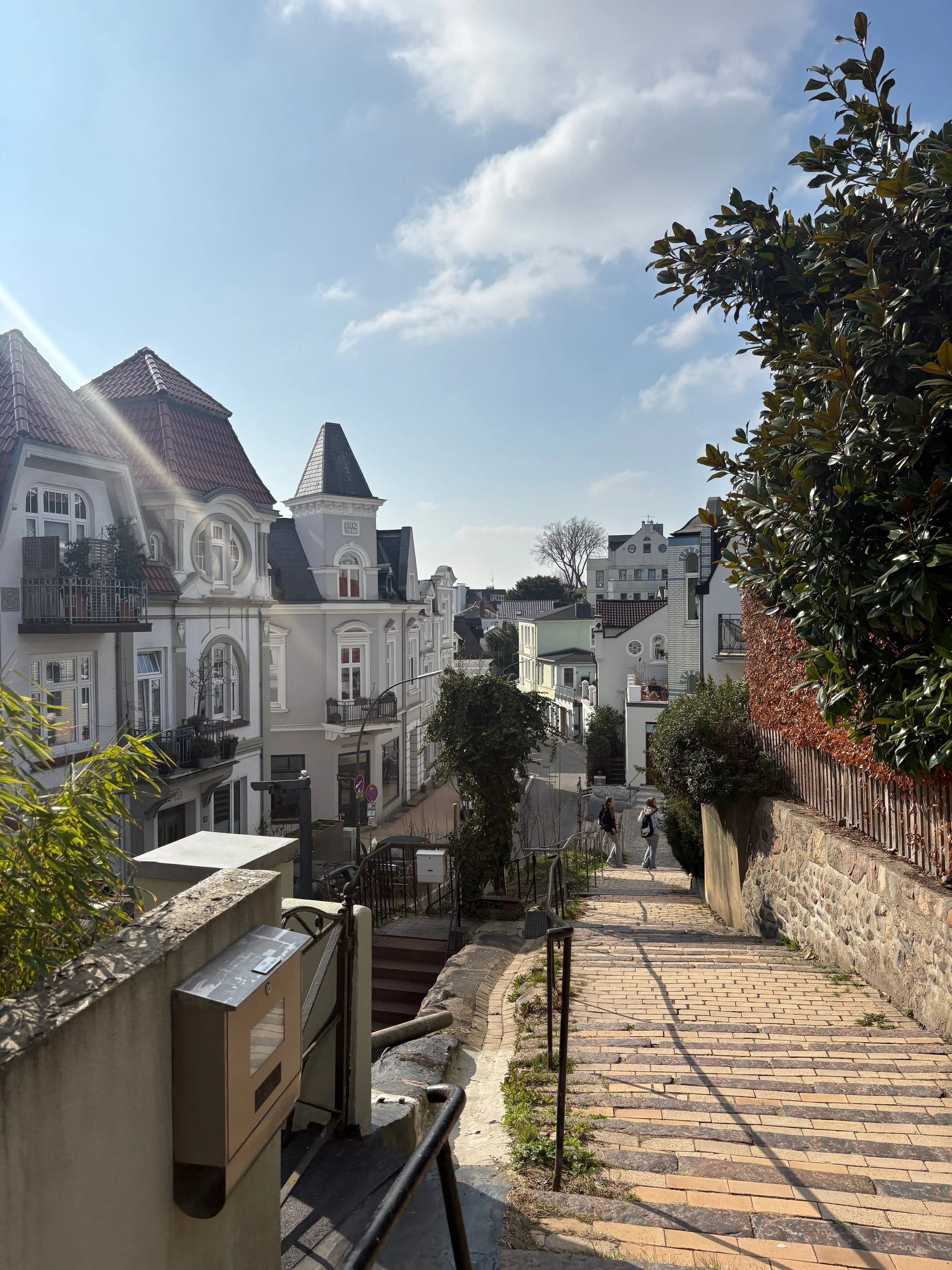 A day in Blankenese felt like the perfect welcome to spring, and a beautiful way to spend my last day in Hamburg. Just outside the city, this charming neighbourhood is known for its winding paths and the 5,000 steps that lead down to the Elbe River. The houses are tucked into the hills, giving the whole area a cozy feel.