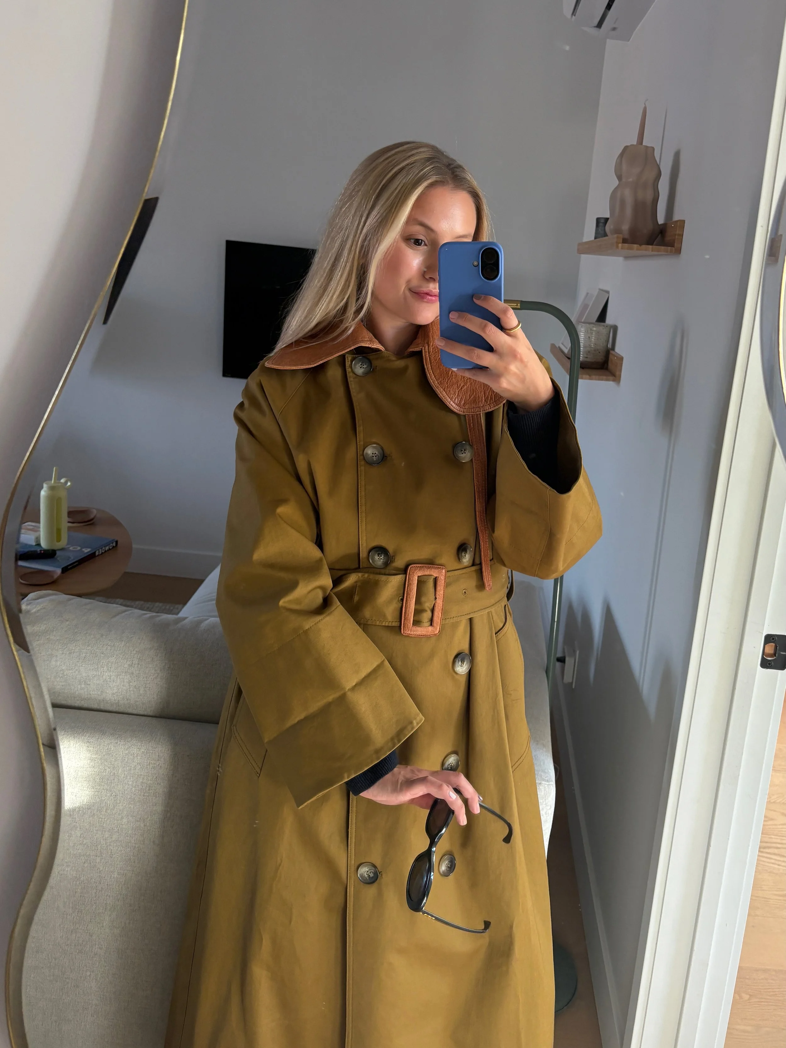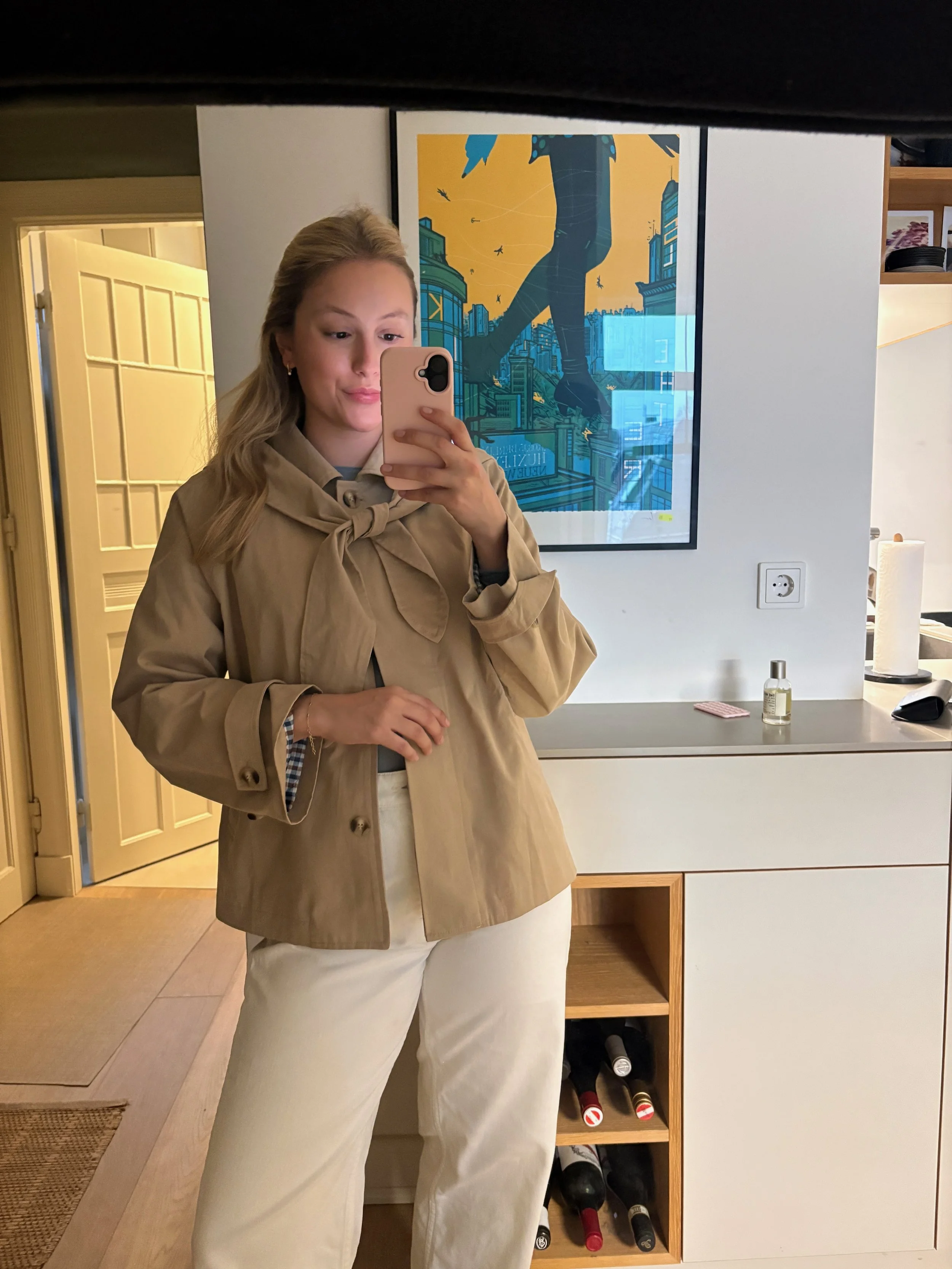 Lately, shorter trench styles have been having a moment. As I mentioned in my previous post, I found a Charlior one in Hamburg that I couldn’t resist. The tie detail at the neck is really cute, and it’s actually a hood! I also have a navy GANNI trench that leans more playful. It’s maybe a bit less aligned with my style now, but it’s still such a standout piece.