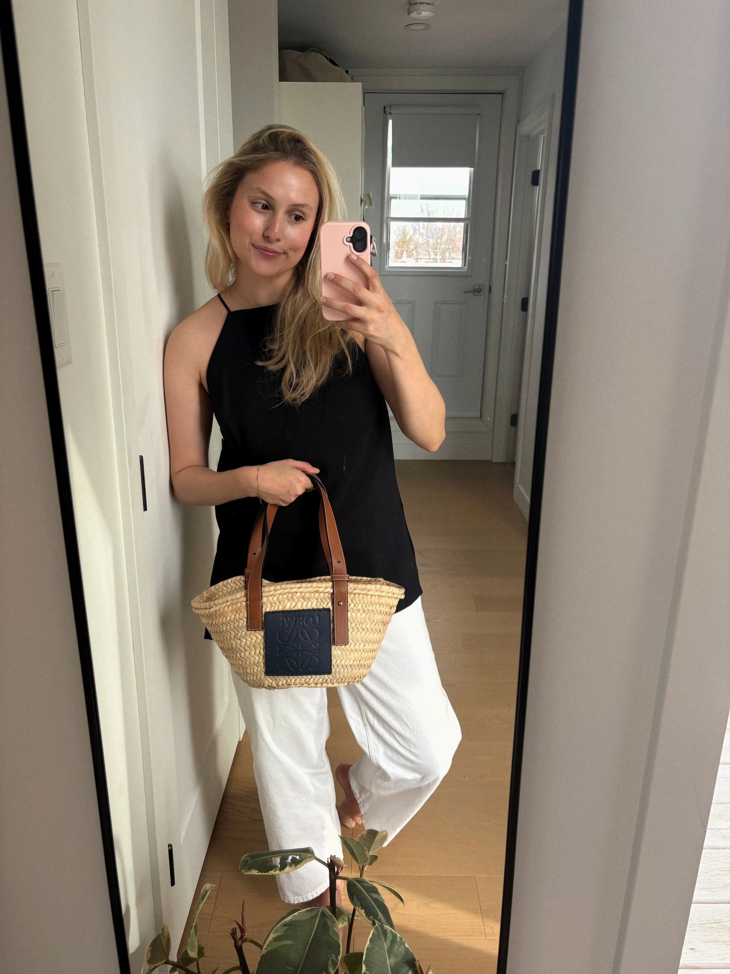I felt a hint of warmth this week and immediately reached for a tank top…classic April behaviour, right? This neckline is easily my favourite, and I love how effortless this Aritzia top feels. It’s simple in the best way and pairs perfectly with my go-to white Filippa K jeans and my Loewe basket bag. If it were truly summer, I’d finish the look with a pair of easy slip-on sandals.