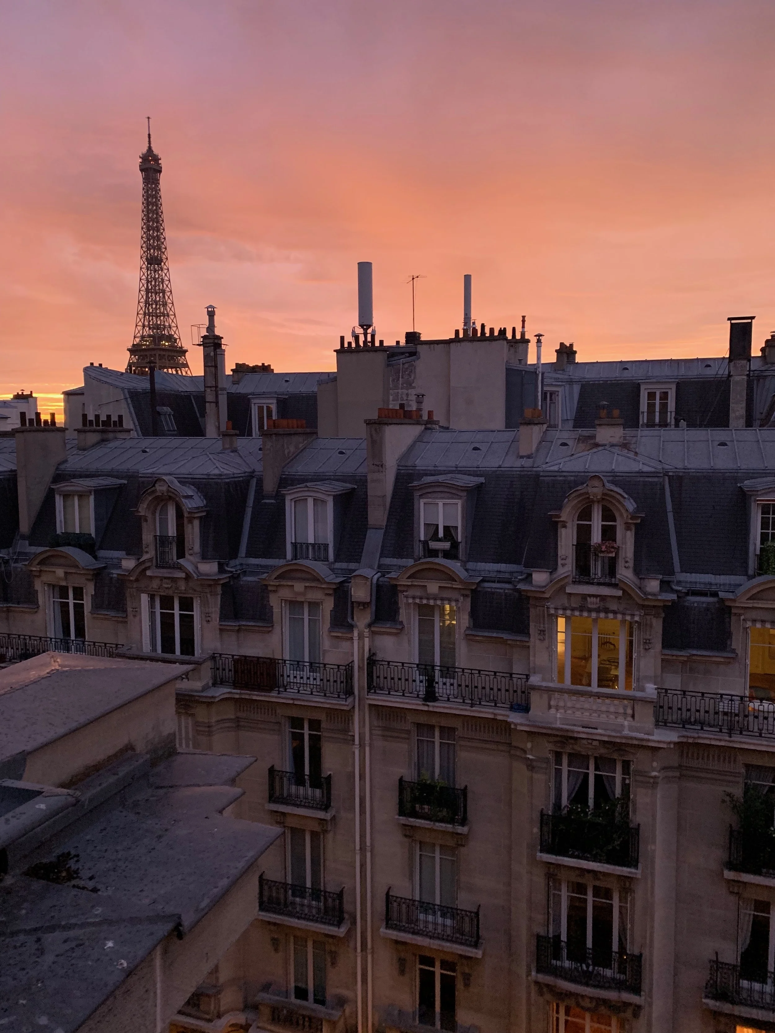 It wasn’t exactly glamorous. I rented a tiny chambre de bonne (maid’s room) on Airbnb, climbed eight flights of the narrowest staircase imaginable, and shared an exterior bathroom with the neighbours and the pigeons (ah!). But what it lacked in comfort, it made up for in views: from my window, I could see the Eiffel Tower, and I still remember feeling completely amazed by the colours in the sky as the sun rose and set over the city.